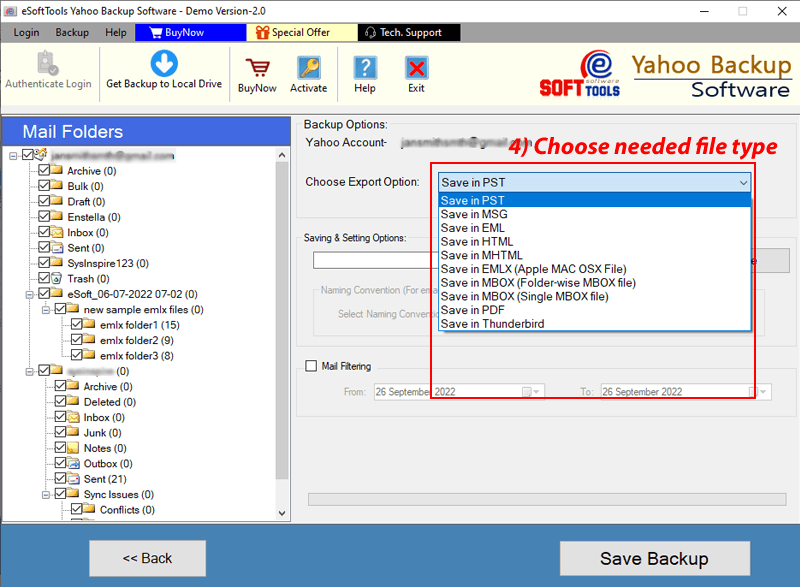 - Download emails of a specific date range from a Yahoo mail account with the Mail filter function.